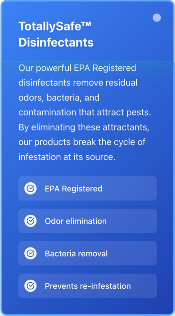 At TotallySafe™ Odor Elimination, we’re committed to revolutionizing pest control through safe, effective solutions that protect both people and the planet. Traditional pest control relies on dangerous chemicals that pose risks to human health, pet safety, and environmental balance. We believe there’s a better way.