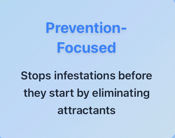 Unlike traditional methods that use harmful chemicals and focus on killing pests after they enter, we prevent infestations by eliminating the odors that attract them in the first place. Our solutions are 100% organic and non-toxic.