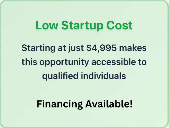 Qualified individuals can secure a protected territory and build a profitable business with our proven model. Join our national expansion with an exclusive franchise opportunity starting at just: